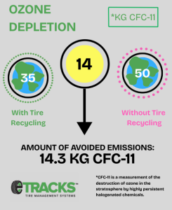 The study’s seven impact categories calculated the emissions resulting from tire recycling operations in relation to the emissions that would have been produced in 2023 if the same TDP had been made using new or raw materials.
